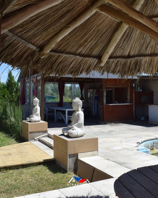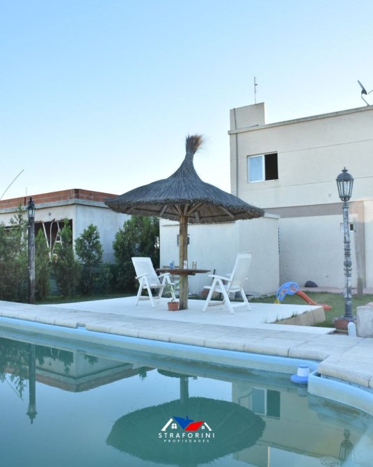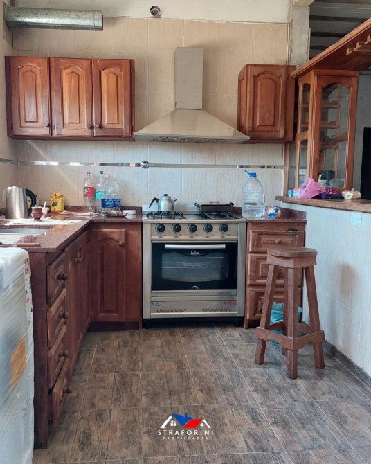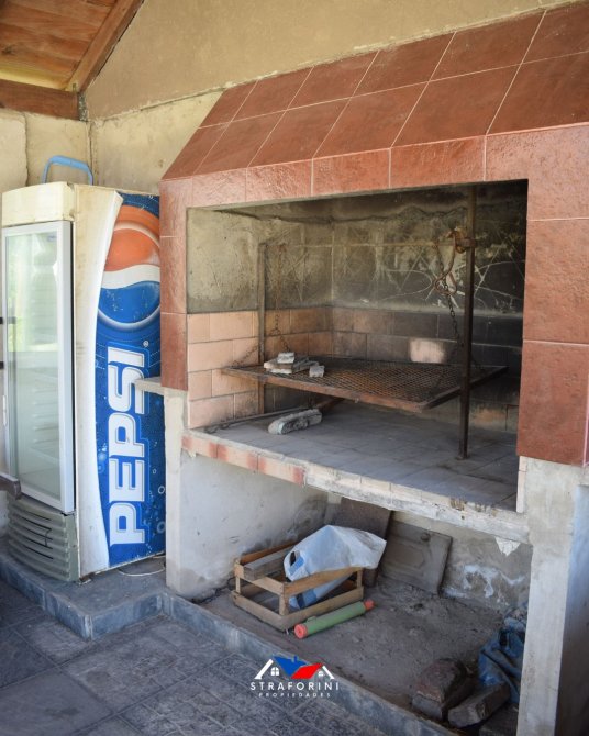 La construcción es tradicional, ladrillo. Cuenta con 100 mts2 construidos en dos plantas.