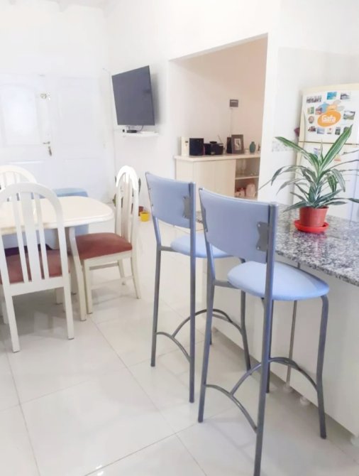 Puerta de ingreso: Doble hoja, living-comedor-cocina integrados, isla desayunador de granito, mesada y bajo mesada en esquinero, pileta de acero inoxidable, bajo mesada, pasillo distribuidor con pared espejada.