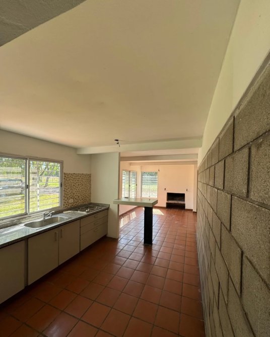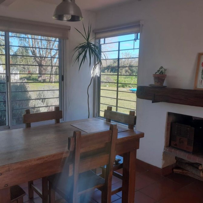 Cocina (con cocina electrica y muebles bajo mesada) Comedor amplio y luminoso con hogar a leña